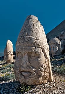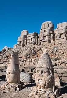 El monte Nemrut, uno de los picos más altos de las montañas del este de Tauro, está coronado por las colosales estatuas de una hierotesion (tumbas del templo y una casa de dioses) construida por Antíoco I (69-34 a. C.) que reinó sobre el reino de Comagene, fundada al norte del Éufrates. Es una de las construcciones más ambiciosas de la época. La fascinante escultura de un panteón y el linaje de sus reyes, que se remonta a través de leyendas, se encuentran en las terrazas del pico de 2.150 metros del monte Nemrut frente a la ciudad de Kahta, Adyaman y vastas mesetas.