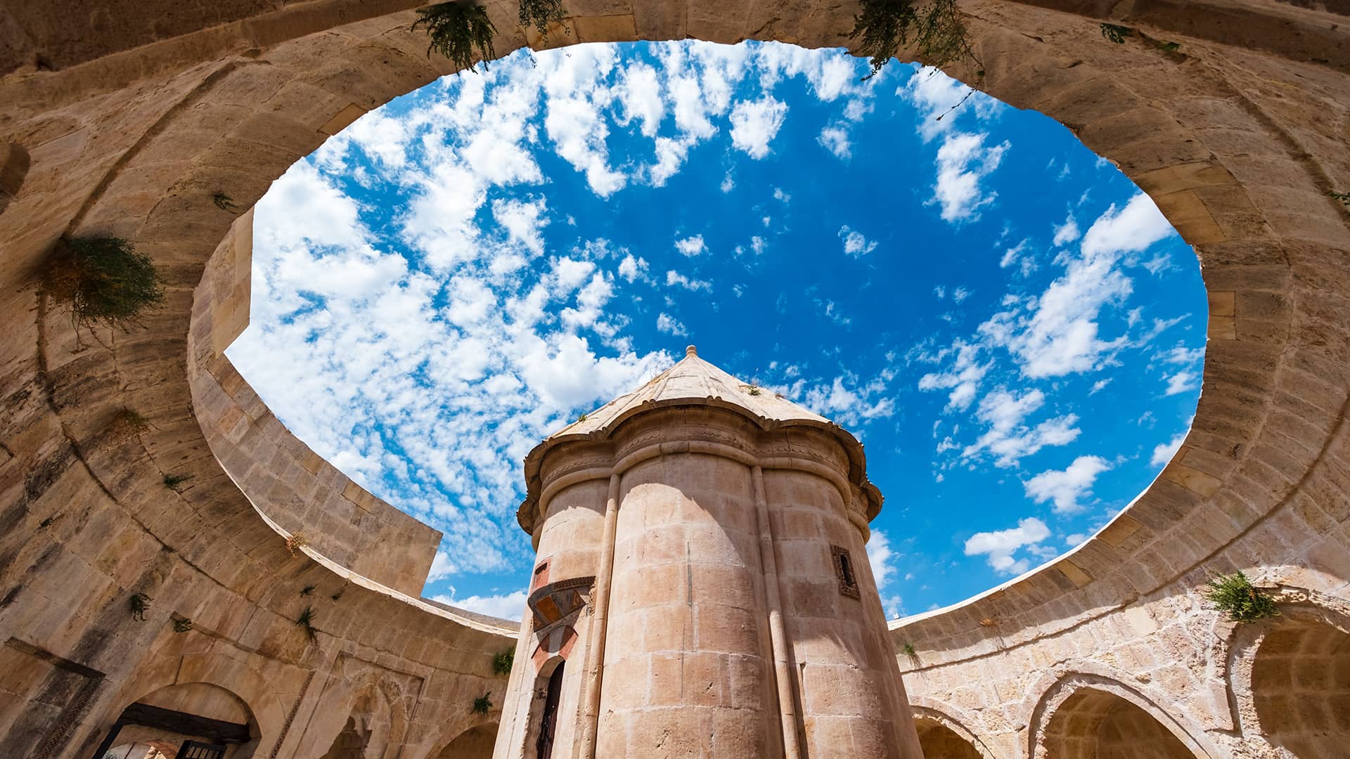 The Mama Hatun Mausoleum, with its segmented body and conical dome, is surrounded by a circular outer wall that gives it a unique architectural plan and form unmatched anywhere else in Anatolia.