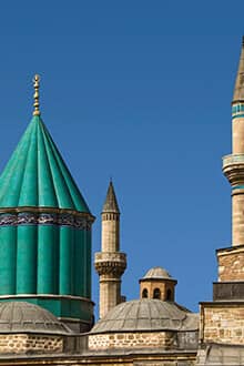 Konya, one of Türkiye’s most important pilgrimage centers, is the location of the former lodge (dergah) of the whirling dervishes and home to the Mevlana’s Mausoleum. The mausoleum and the former lodge can now be visited as a museum by visitors of all faith.